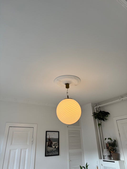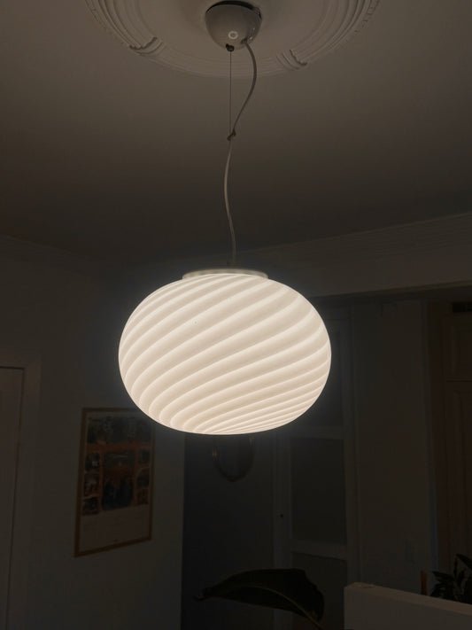 Kæmpe vintage Murano pendel i hvid swirl, 45 cm