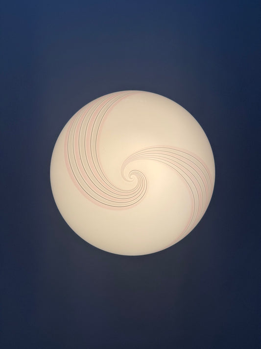 Vintage Murano hvid pendel med lyserød swirl, 40 cm