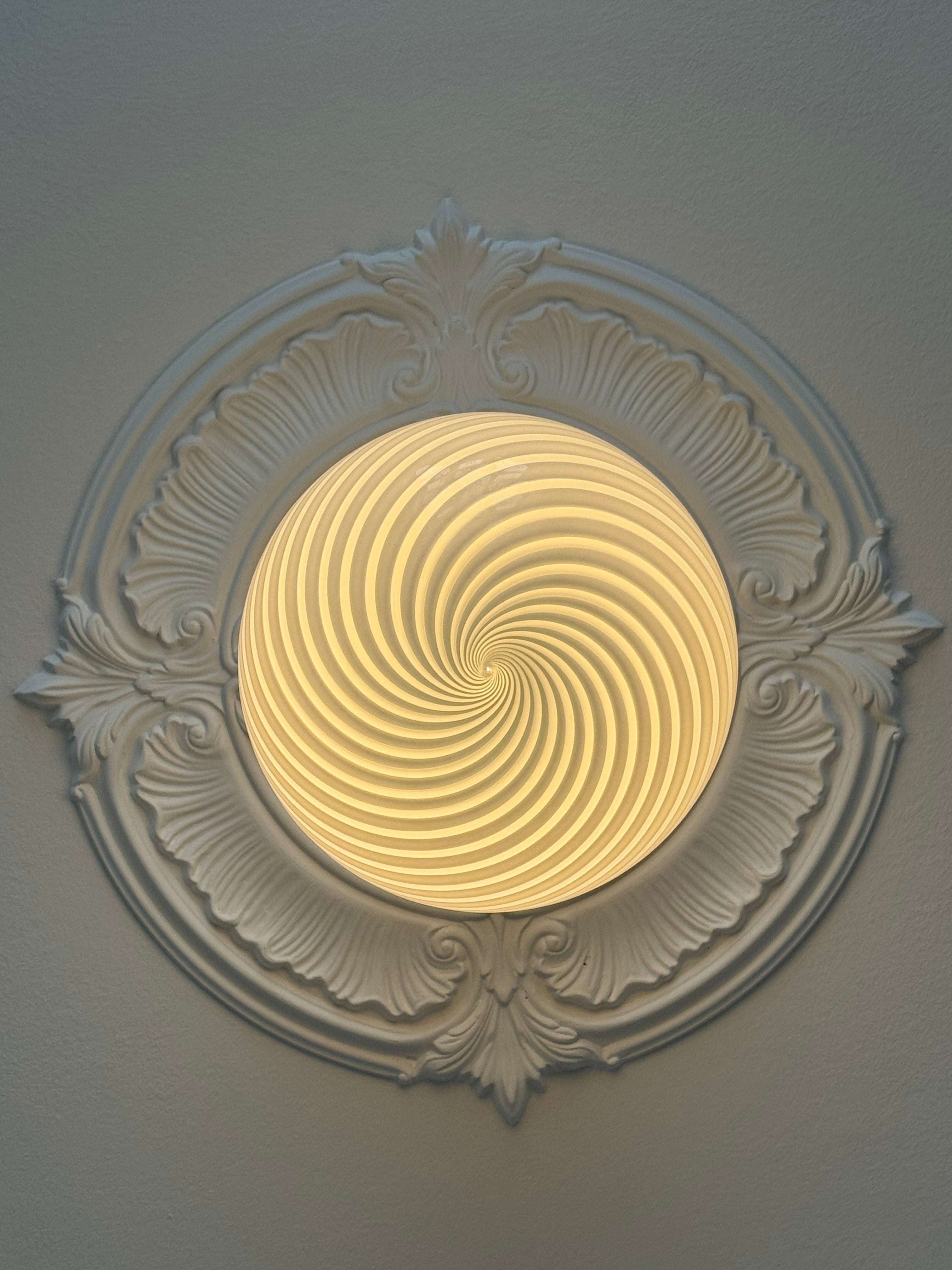 Murano rund pendel gul lodret swirl, 30 cm (Én tilbage)