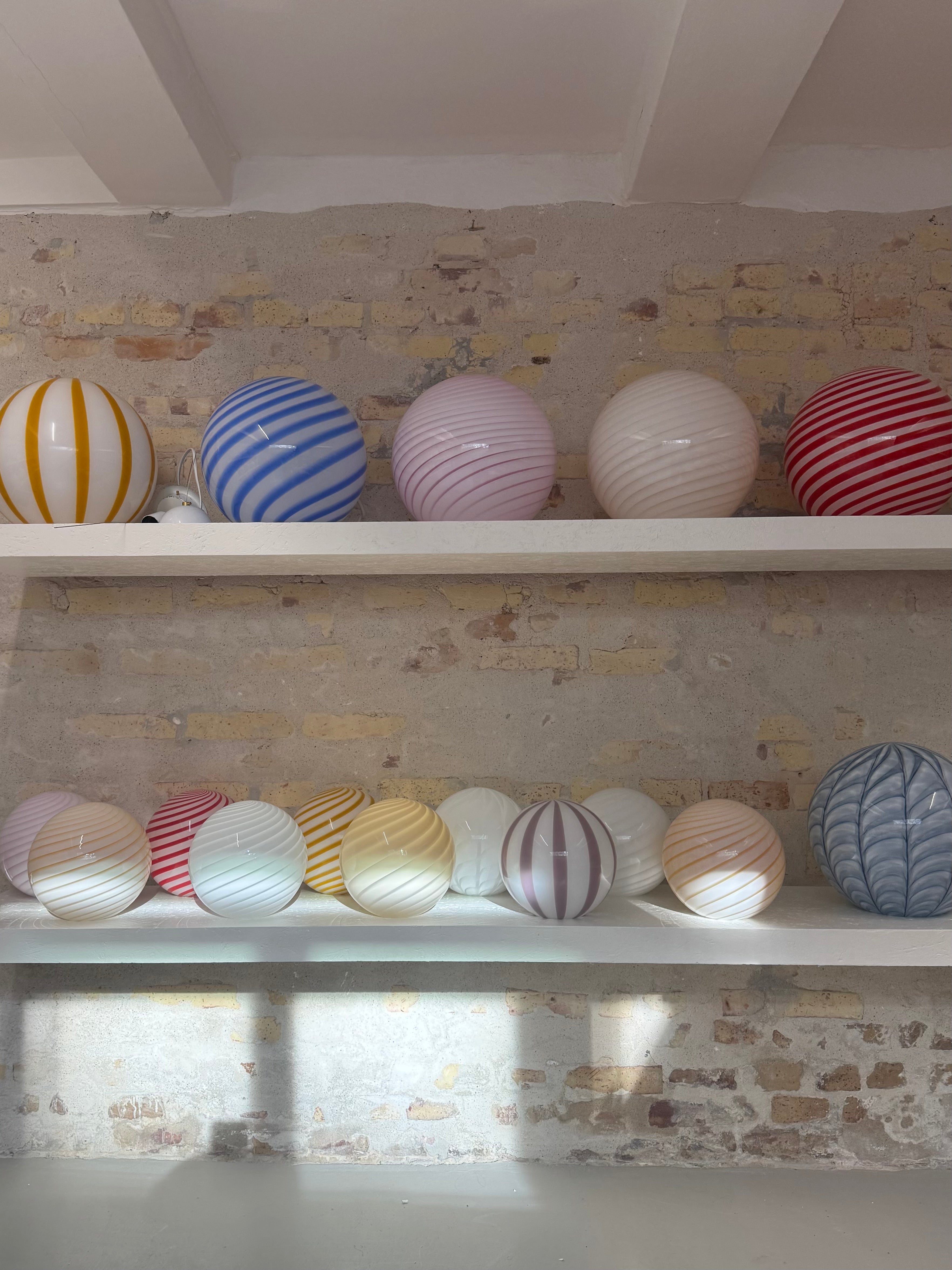 Klassisk rund vintage Murano pendel m. hvid swirl, 30 cm