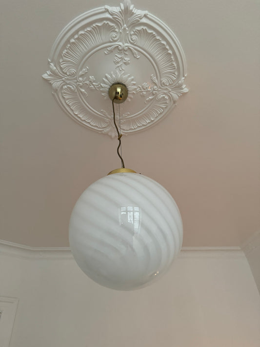 Murano rund pendel med hvid klassisk swirl, 40 cm