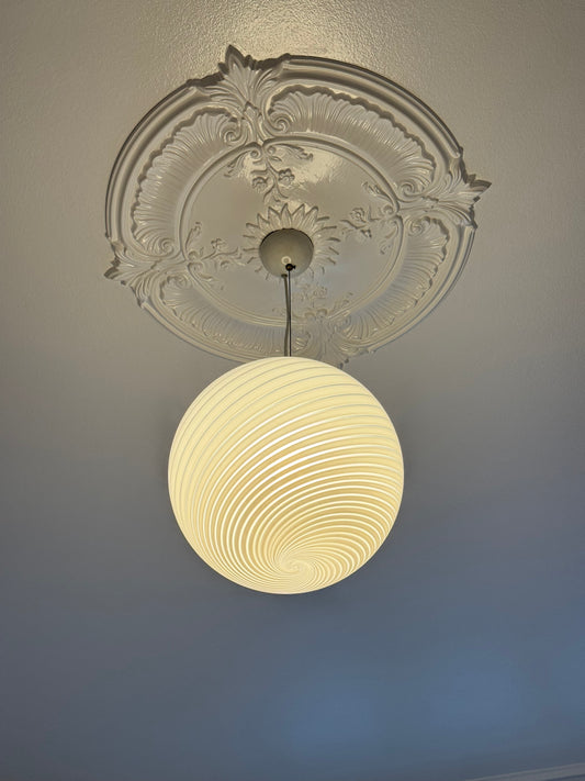 Murano rund pendel med klassisk hvid swirl og original sticker, 25 cm
