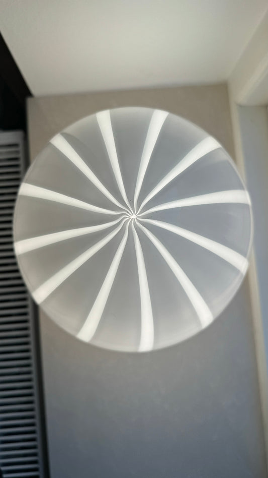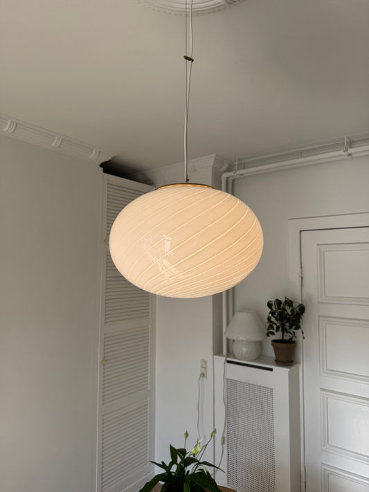 Sjælden Murano pendel i hvid horisontal swirl, 35 cm