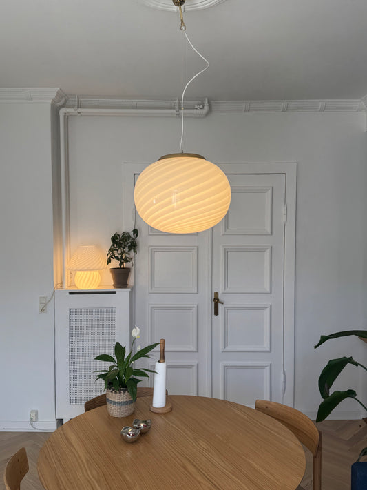 Reservation - Murano rund pendel med hvid swirl, 35cm