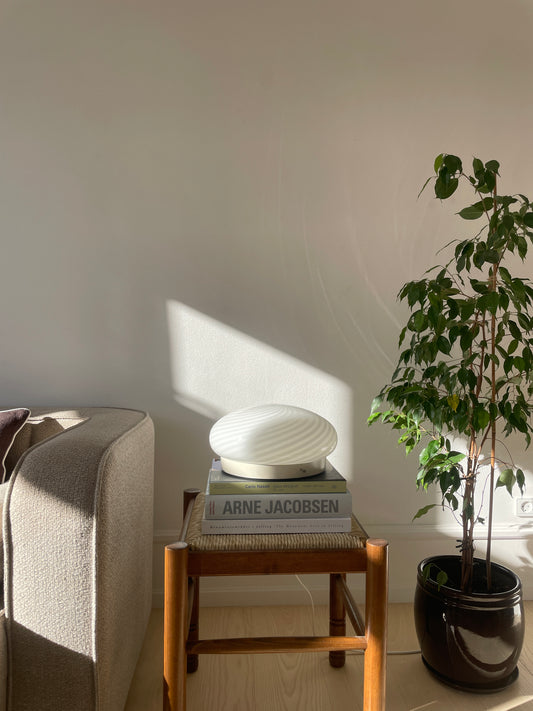 Klokkeformet vintage pendel med hvid vertikal swirl, 50 cm