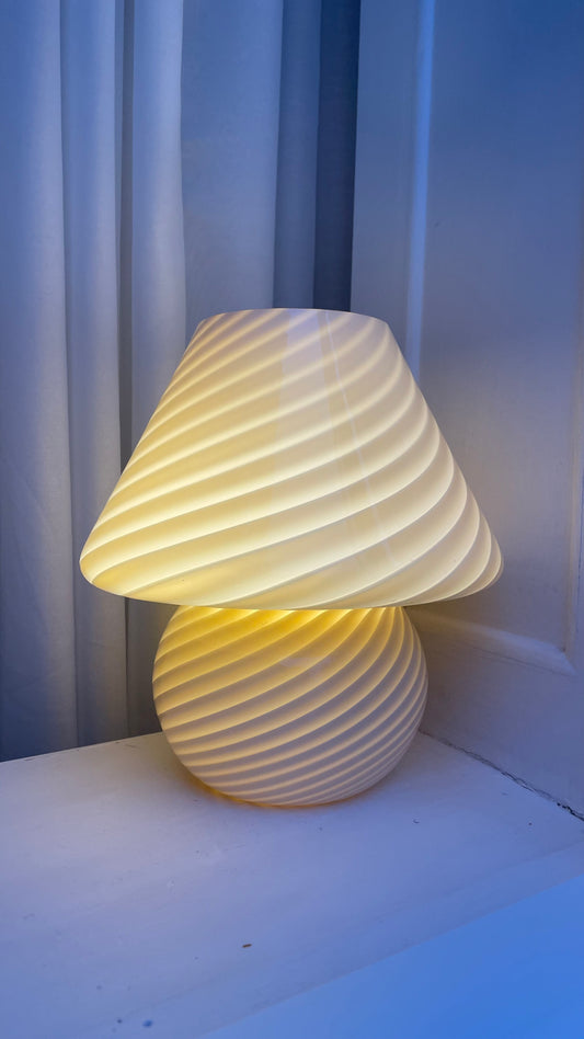 Murano Mushroom i klassisk hvid swirl, 37 cm