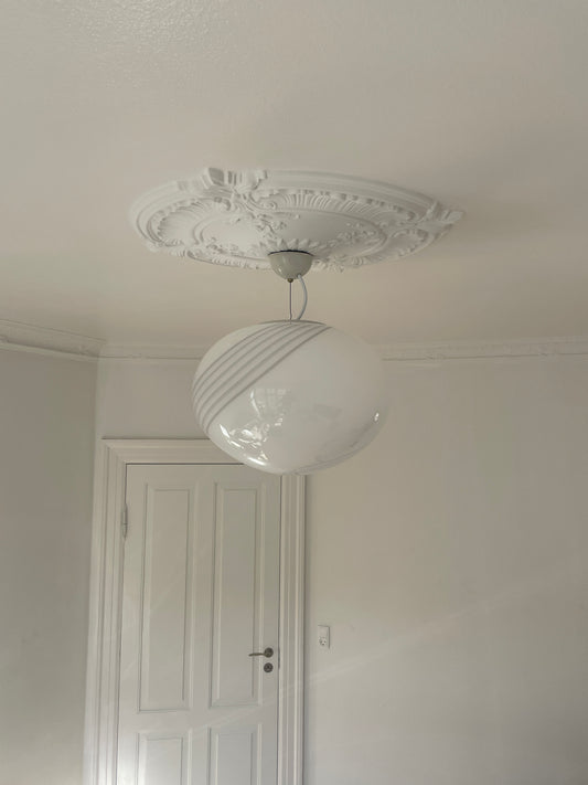Murano pendel rund i klassisk hvid swirl, 40 cm
