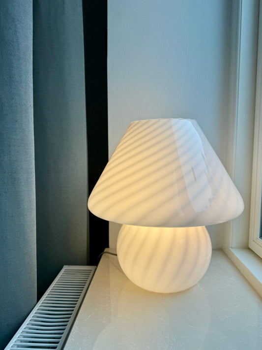 Giv mig beskedVintage Murano mushroom i klassisk hvid swirl, 27 cm
