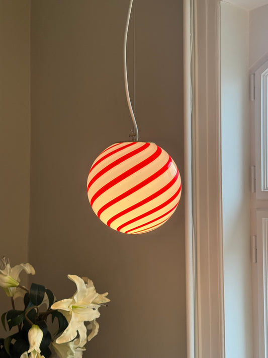Lyserød Murano pendel med klassisk swirl, 40 cm
