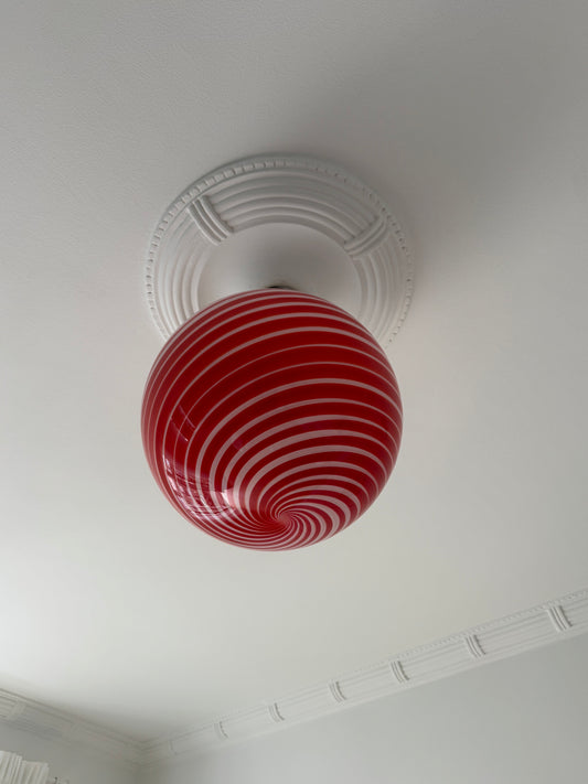 Murano candy pendel rød og hvid swirl, 20 cm