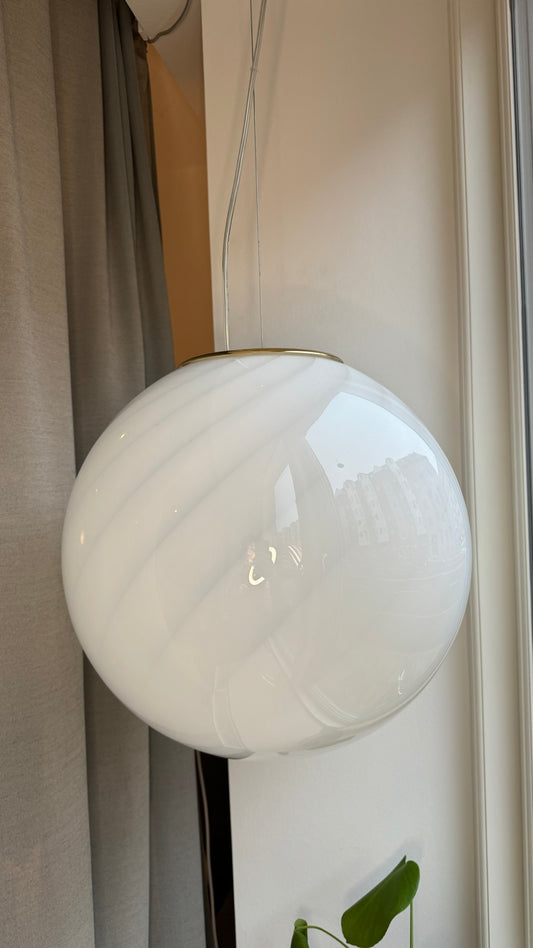 Murano rund pendel med hvid swirl, 35cm