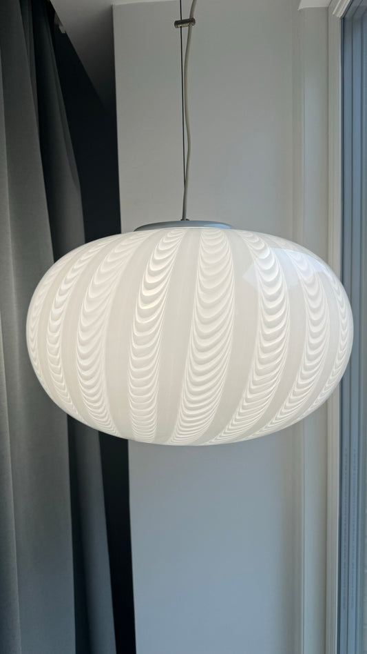 Murano pendel med hvid swirl, 40 cm (RESERVERET)
