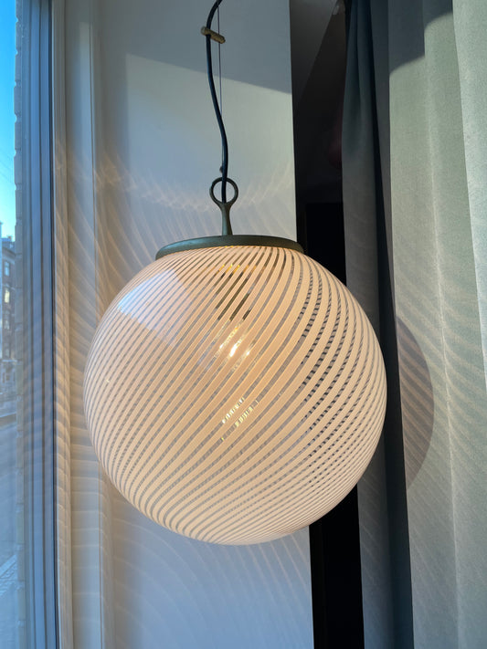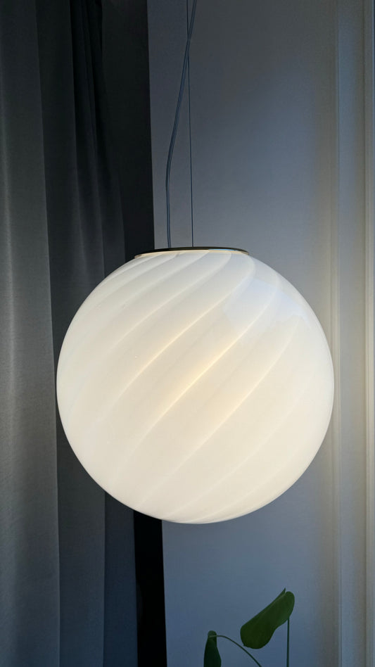 Murano rund pendel med hvid swirl, 40 cm