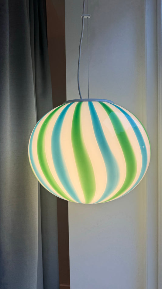 Murano pendel med vertikal grøn og blå swirl, 38 cm