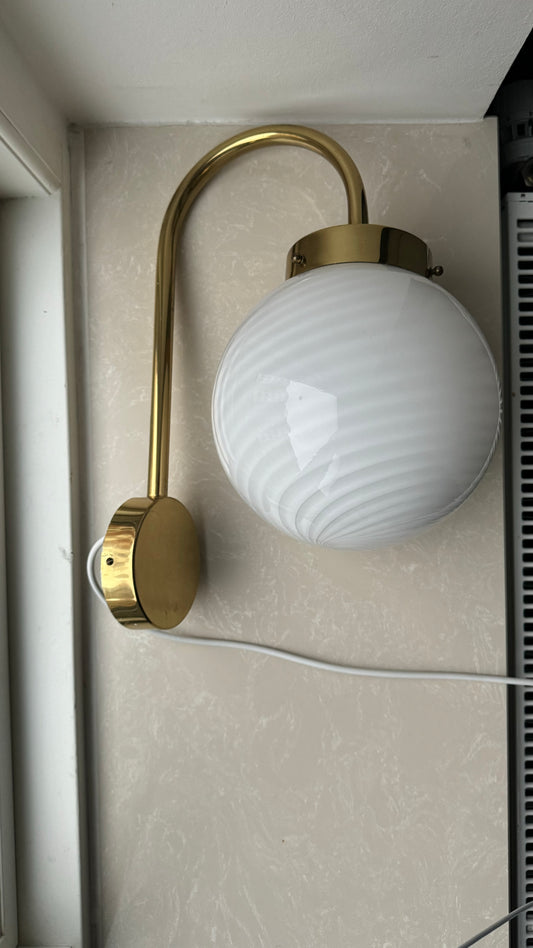 Murano væglampe i hvid klassisk swirl, 40 cm høj