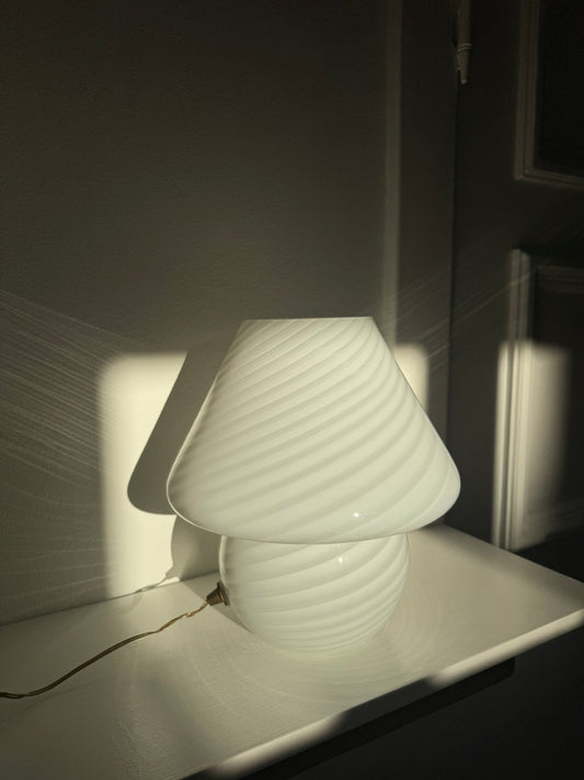 Vintage Murano mushroom i klassisk hvid swirl, 27 cm