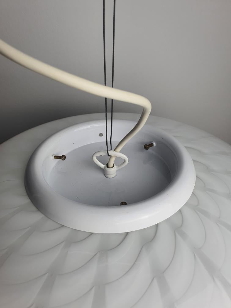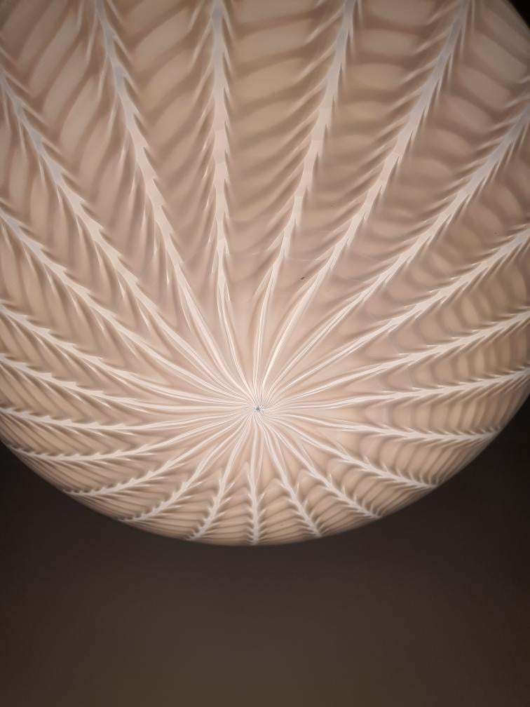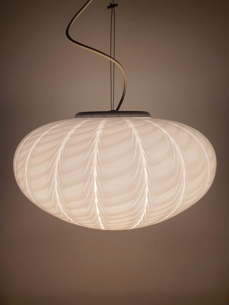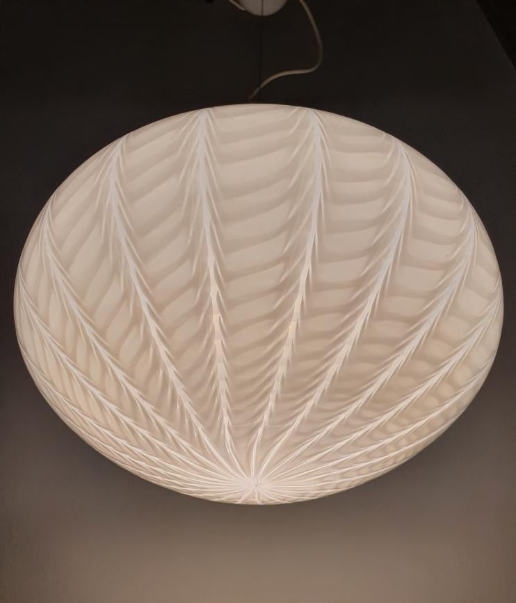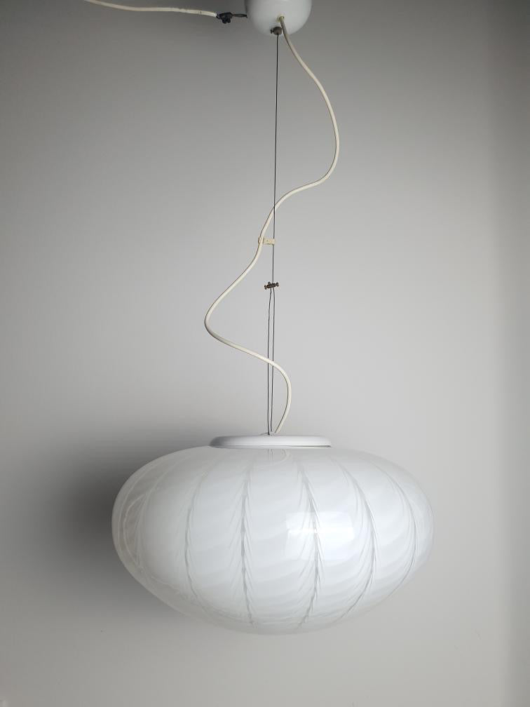 Kæmpe vintage Murano peacock oval pendel med det flotteste hvide sjældne mønster.