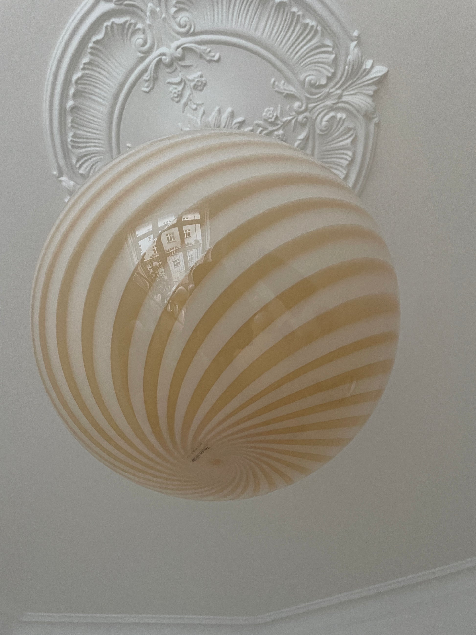 Meget smuk Murano pendel i det smukkeste gule glas. Bemærk at lampen også har en helt original sticker, hvilket er super sjældent.