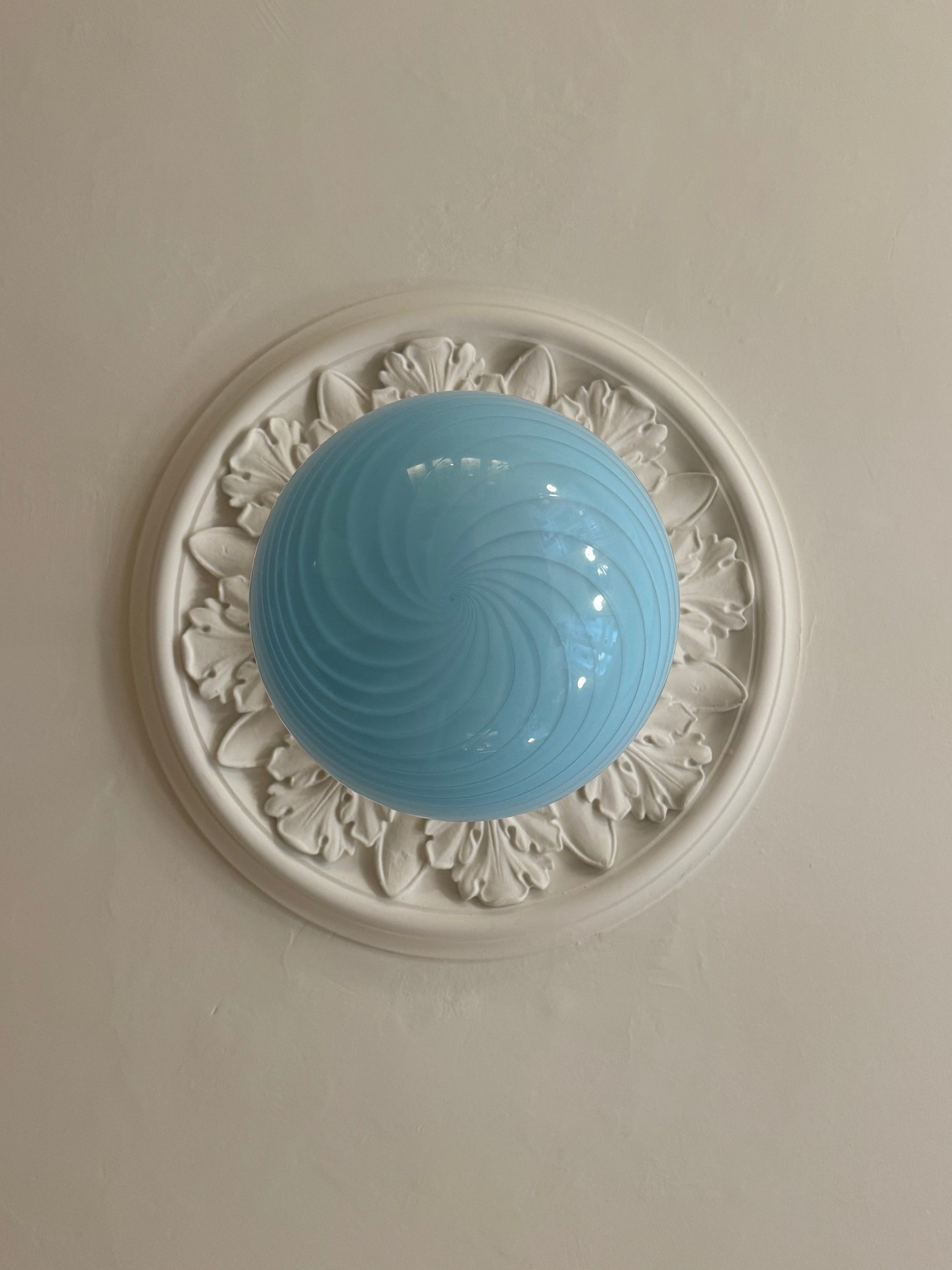 Smukt fund fra Italien - blå Murano loftslampe og med et smukt ophæng i messing.