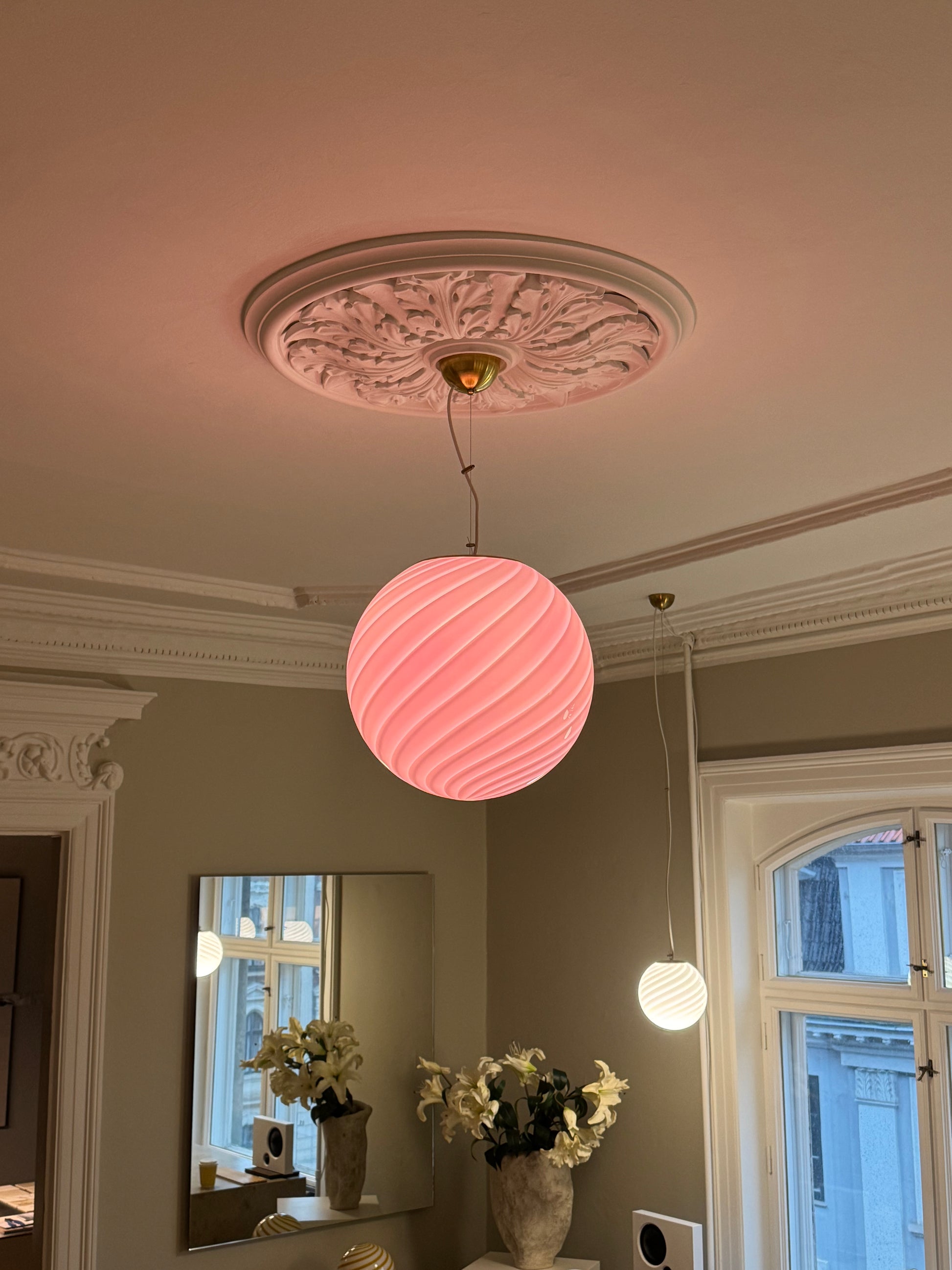 Lyserød Murano pendel med klassisk swirl, 40 cm
